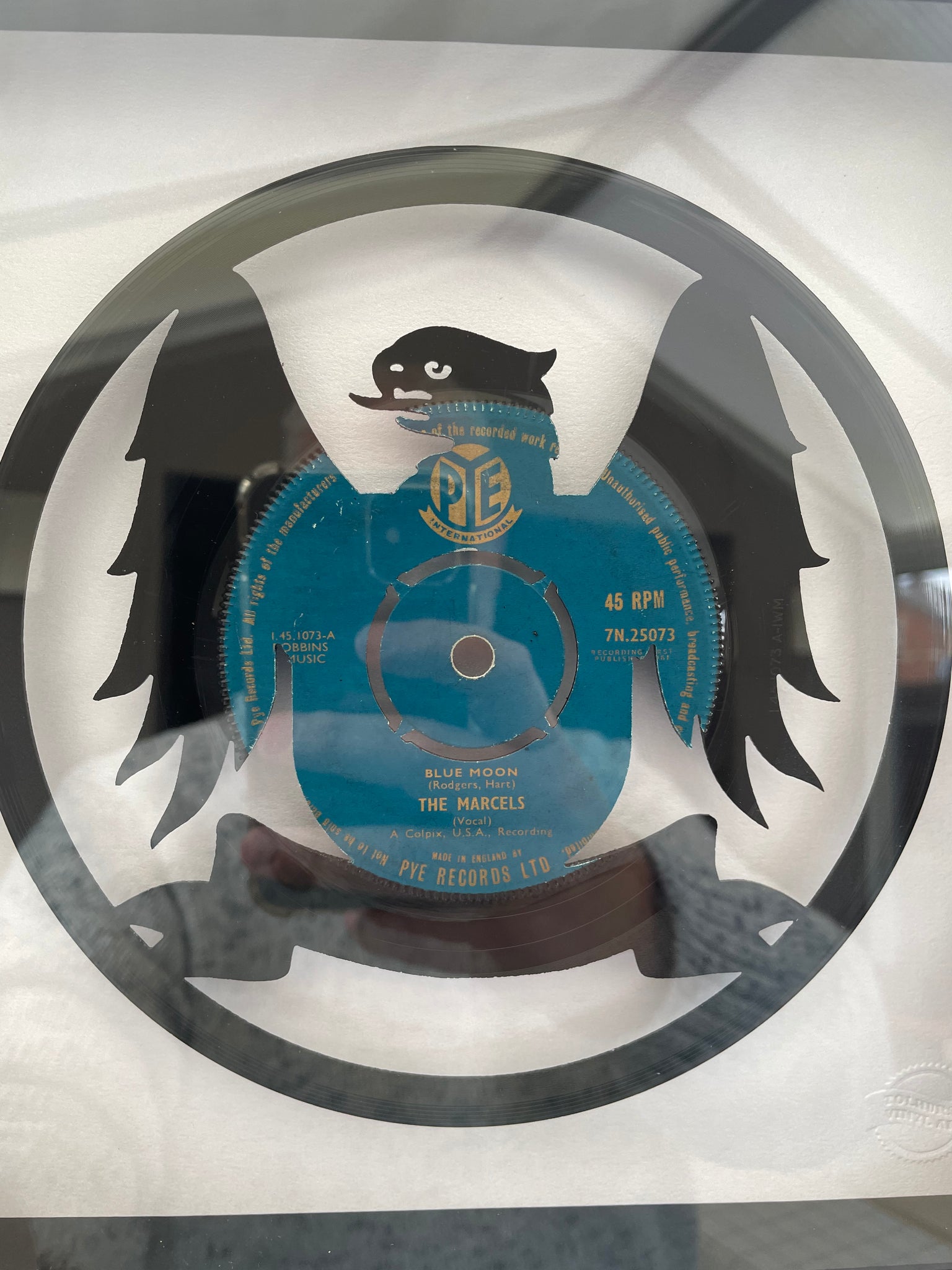 These pieces are made from vintage singles hand-cut and sourced by myself. There will normally always be visible wear and tear from being played such as scuffs to the vinyl and marks to the labels. This adds to the authenticity of the piece. Now, cut into novel shapes you can now appreciate not only some of your favourite records but now as a piece of individual art. Please note vinyl style of label may change slightly depending on availability when sourcing the record.
